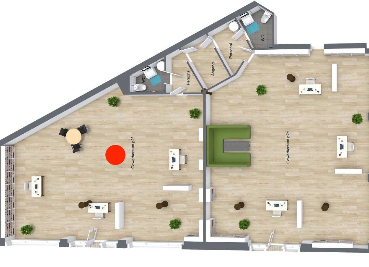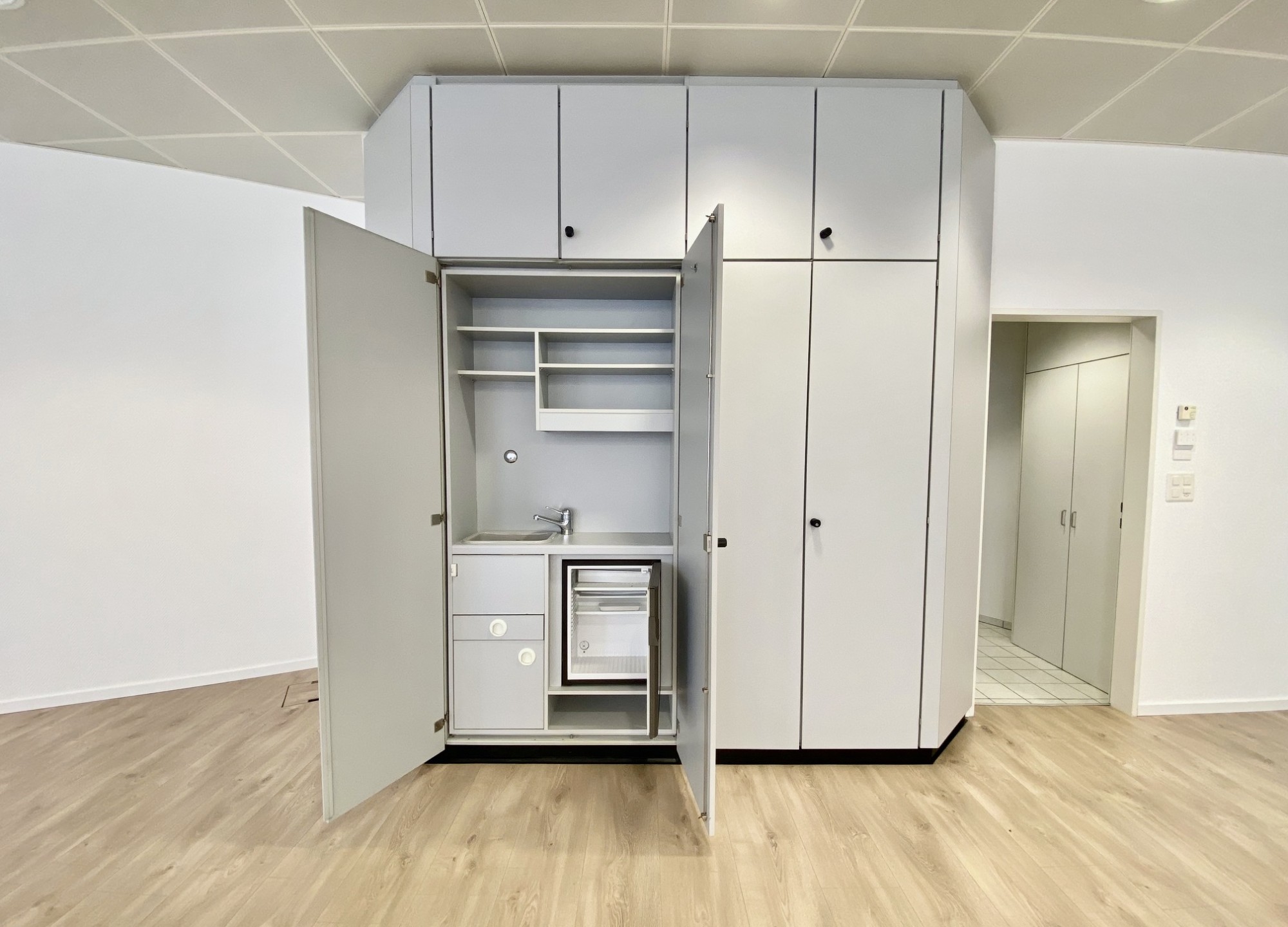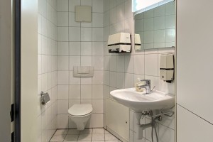 Zudem verfügt die Fläche über einen separaten Sanitärbereich mit WC und Lavabo.