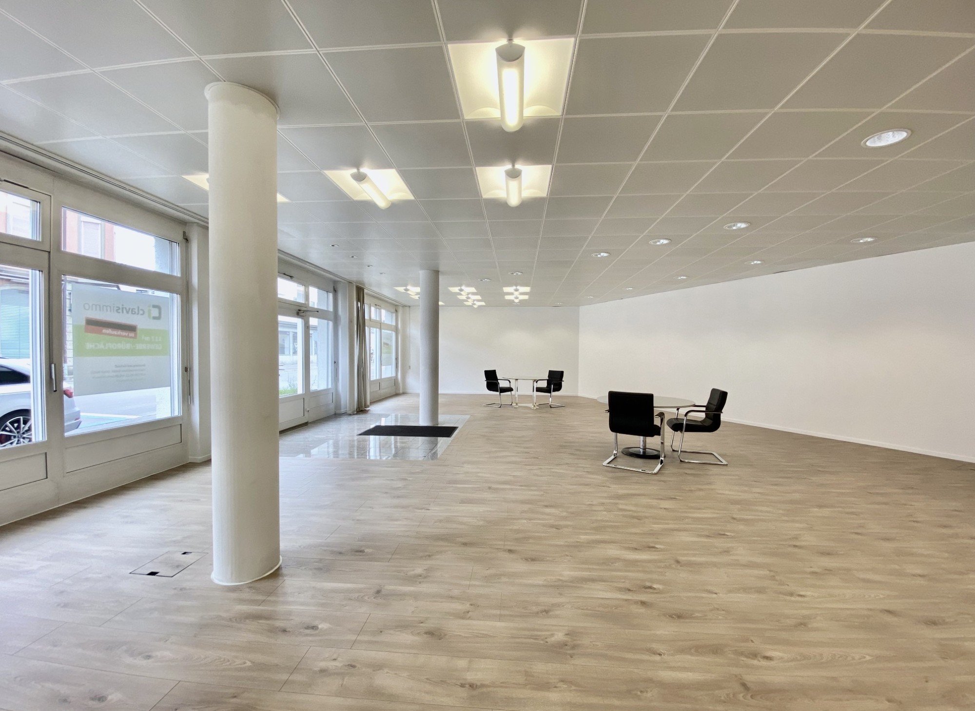Die Räumlichkeit überzeugt mit einer grosszügigen Schaufensterfront, die ideale Werbemöglichkeiten schafft und Ihre Geschäftspräsenz wirkungsvoll hervorhebt. Der Fussboden wurde neu verlegt und die Wände frisch gestrichen, was der Fläche ein modernes und gepflegtes Erscheinungsbild verleiht.